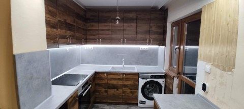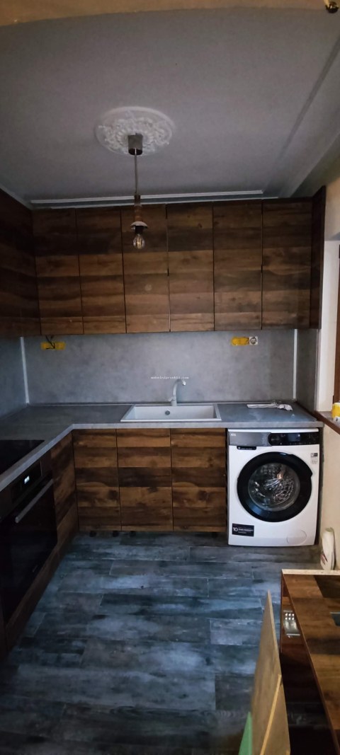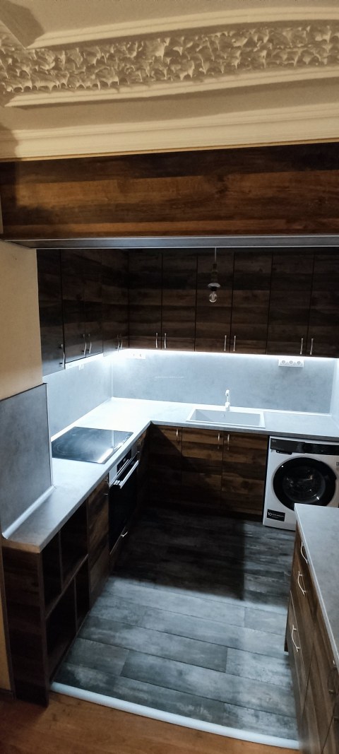 Проектът представлява кухня в борово, изработен по индивидуален проект в Пловдив. Решението е съобразено с пространството и изискванията на клиента, като комбинира функционалност и модерен дизайн.